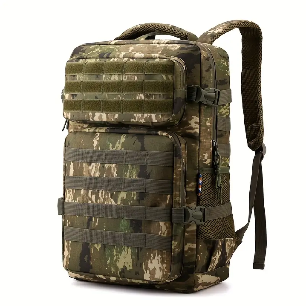 Deze duurzame tactische rugzak is ontworpen voor actieve buitensporters, reizigers en avonturiers. Met een grote capaciteit, meerdere opbergvakken en verstelbare banden biedt deze rugzak comfort, functionaliteit én stijl. Gemaakt van sterk nylon en voorzien van een polyester voering, is hij bestand tegen intensief gebruik.